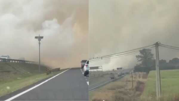 Um Incêndio com cortina de fumaça foi registrada no começo da tarde desta segunda-feira (1), na pista Anhanguera, quilômetro 247, em Santa Rita do Passa Quatro e assustou quem transitava através do local.