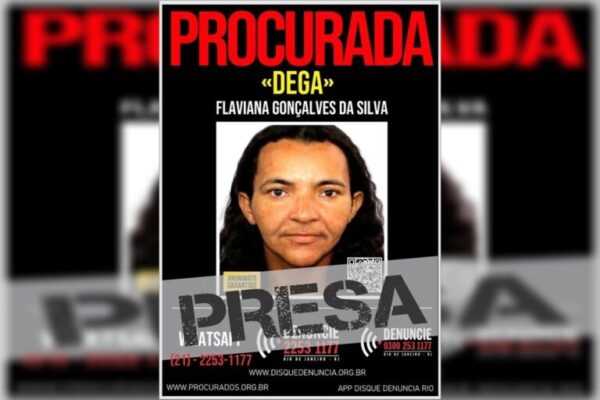 Policiais militares do 4º Comando de Policiamento de Área (CPA), pertencentes ao 25º Batalhão de Polícia Militar (BPM) de Cabo Frio (RJ), em ação conjunta com a Subsecretaria de Inteligência da Polícia Militar (SSI/PMERJ), depois de análise de dados e informações passadas através do Disque Denúncia, prenderam no final da manhã da sexta-feira anterior (1º/10), na Rua Comendador Queiroz, centro, em Araruama (RJ), a criminosa, foragida da Justiça, Flaviana Gonçalves da Silva, vulgo “Dega”, de 37 anos.