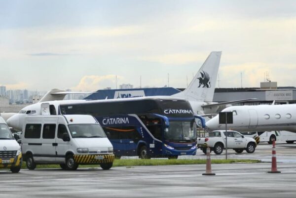 O desembarque se deu através do portão executivo, e os jogadores não tiveram contato com outros passageiros. De lá, a equipe continua diretamente para o hotel em que ficará hospedada, no Setor Hoteleiro Norte, onde é esperada por dezenas de aficionados.