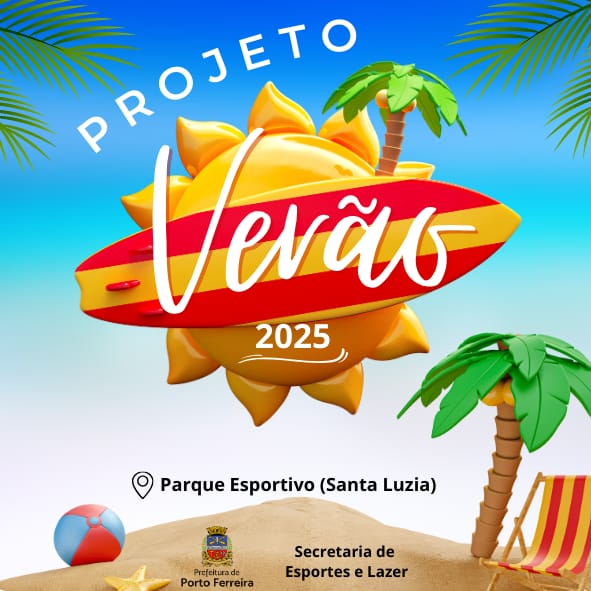 A Secretaria de Esportes e Diversão de Porto Ferreira convida toda o povo a fazer parte das atividades do Projeto Verão 2025, promovendo saúde, diversão e muito mais para todos os públicos!