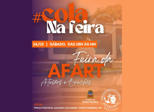 A Prefeitura Municipal de Porto Ferreira, por intermédio da Secretaria de Desenvolvimento Econômico e Turismo (SDET), promove no sábado (24/05) a segunda edição da Feira da Afart (Associação Ferreirense de Artesãos).