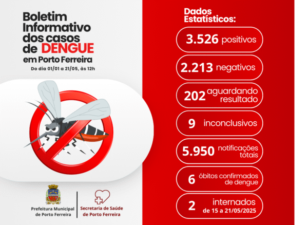 A Secretaria de Saúde de Porto Ferreira continua mobilizando o povo para intensificar medidas preventivas, como a eliminação de criadouros do mosquito Aedes aegypti, principal vetor da doença, e manter a atenção redobrada quanto aos sintomas iniciais, como febre, dores no corpo e manchas avermelhadas na pele.