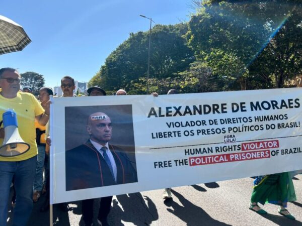 Manifestantes carregaram cartazes com críticas ao STF e ao presidente Luiz Inácio Lula da Silva (PT). Também criticaram o presidente da Câmara dos Deputados, Hugo Motta (Republicanos-PB) e do Senado, Davi Alcolumbre (União Brasil-AP). Coelho chamou ambos de “omissos”.
